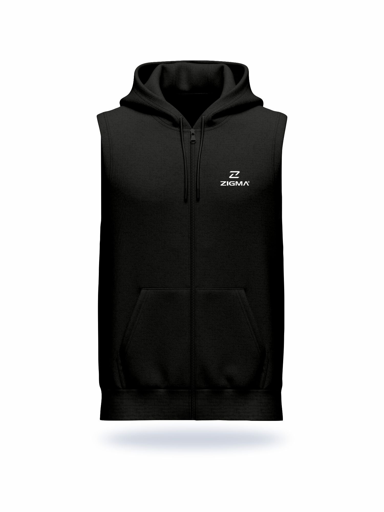 A hoodies with a full zip is a casual, comfortable garment made from soft, warm fabrics like cotton or fleece. It features a full-length front zipper for easy wear and adjustable ventilation, sleeveless, a hood for extra warmth and often pockets for convenience. The ribbed cuffs and hem help retain heat and maintain shape, making it ideal for layering in cool weather. Available in various sizes, colors and designs.